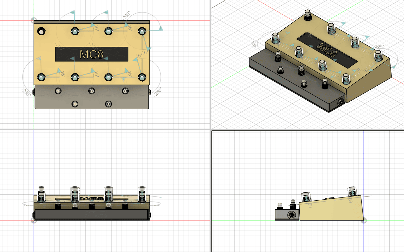 A 6 switch flat aux switch, matching width of the MC8; 2.25″ deep; rear 3 switches are taller to make for easier access, with only 2 switches in the front; Yes, you lose 1 Omniport switch, but this looks nice =)